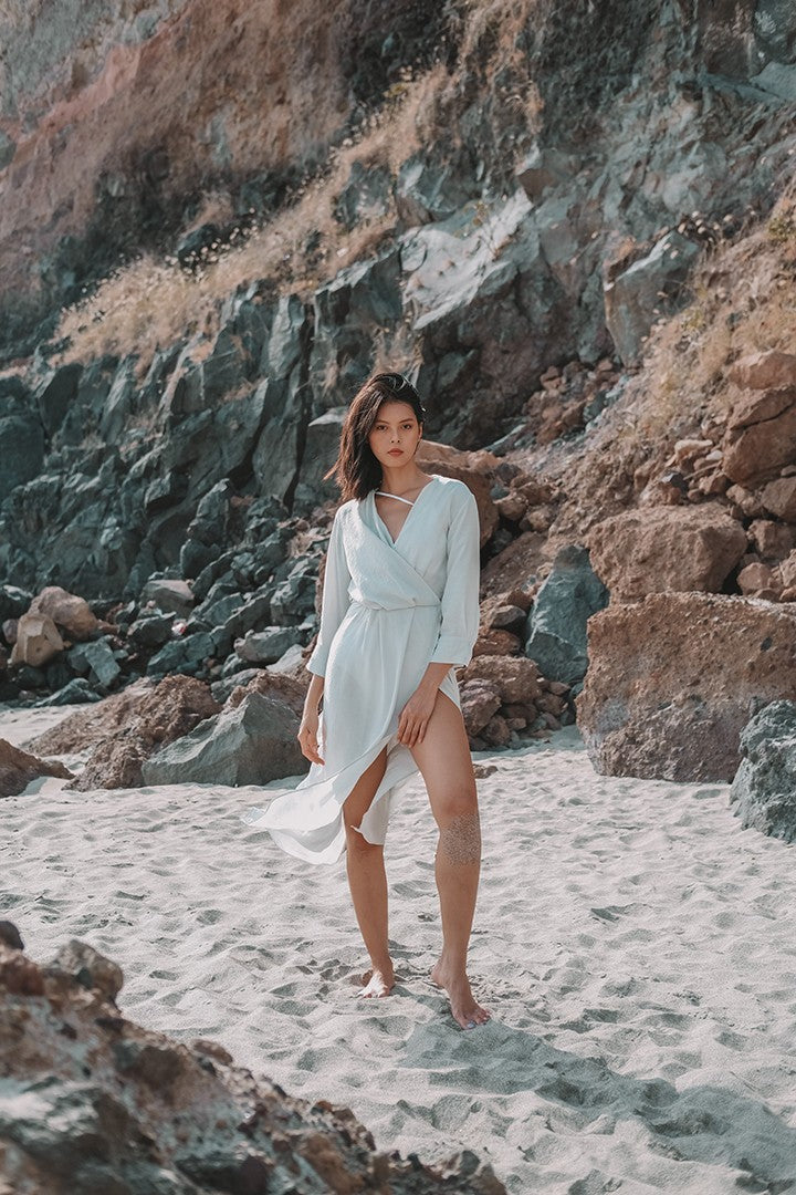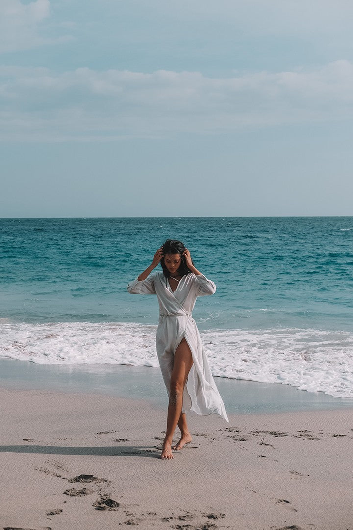 A classic timeless Wrapped-Shirt Dress with long sleeves that constructed from a flowy cotton fabric.