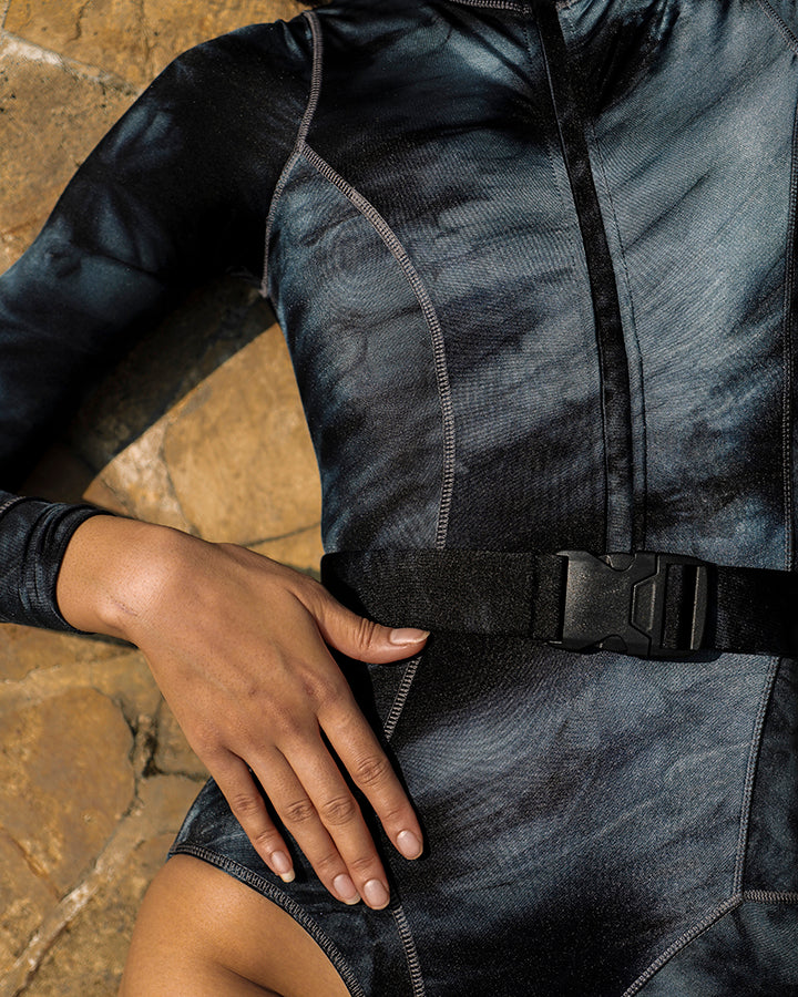 KIRANA LONG-SLEEVE SWIMSUIT TIE DYE OCEAN