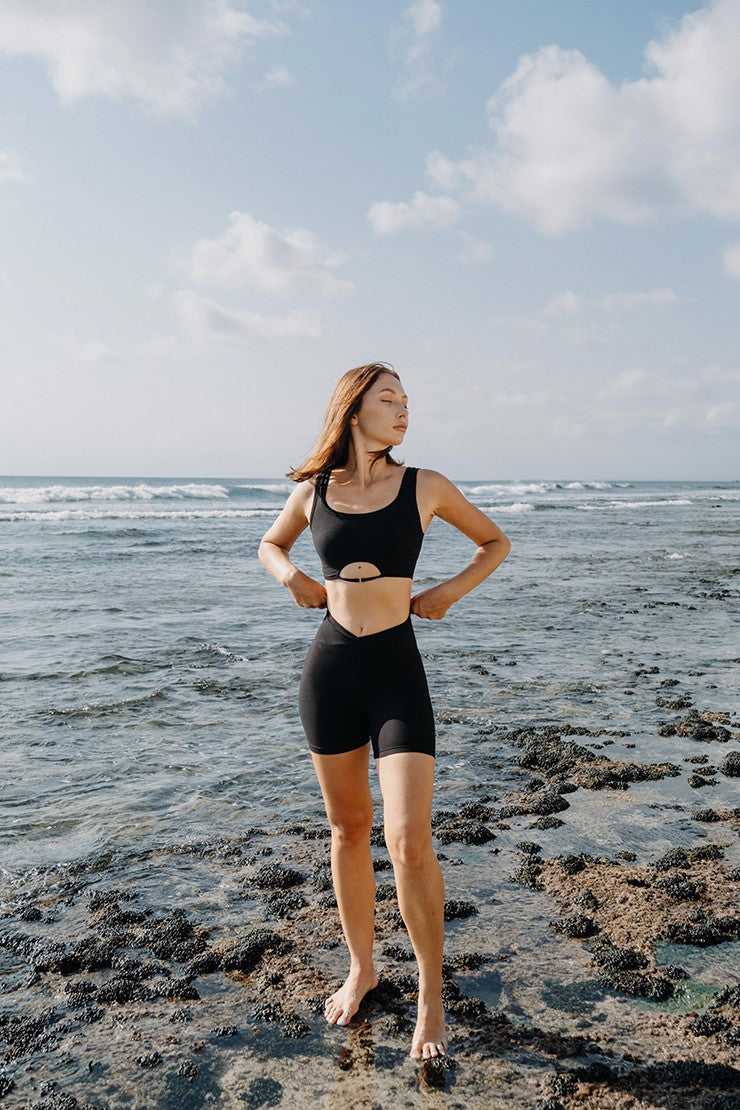 Here comes a unique piece for your wardrobe, Orion Top is a cropped tank top crafted with a unique cut out at the front underbust to show some skin. Pair it with our Orion Shorts for a complete look.