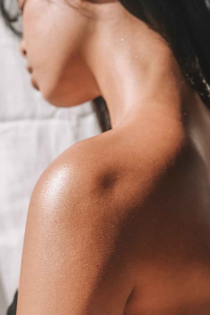 A skin shimmer that gives the skin a no fuzz subtle glow & shimmering look